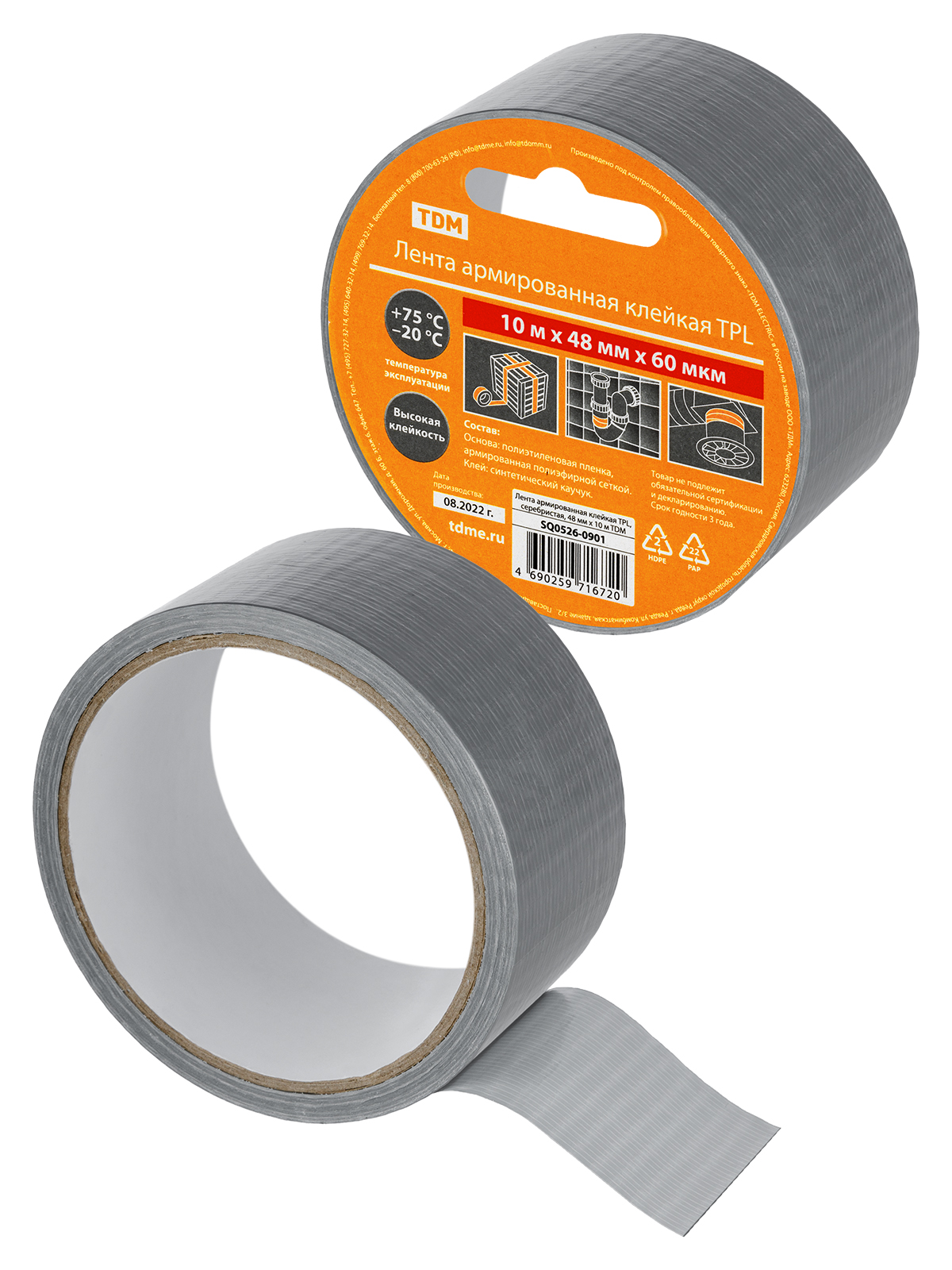 Лента армированная клейкая TPL 48мм х 10м серебристая TDM