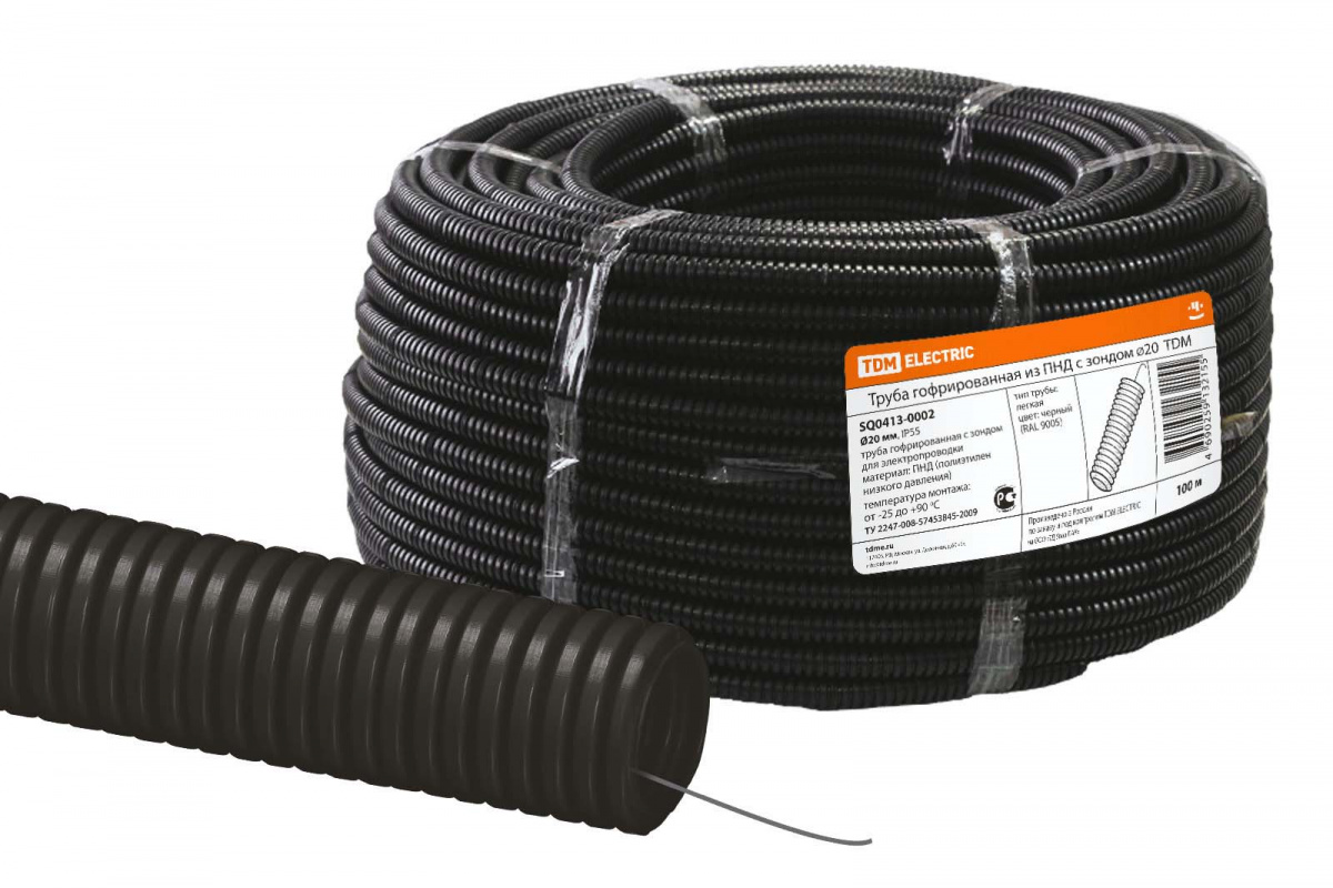 Труба гофрированная ПНД D=20мм (черная с зондом) Dвн.=14,2мм TDM