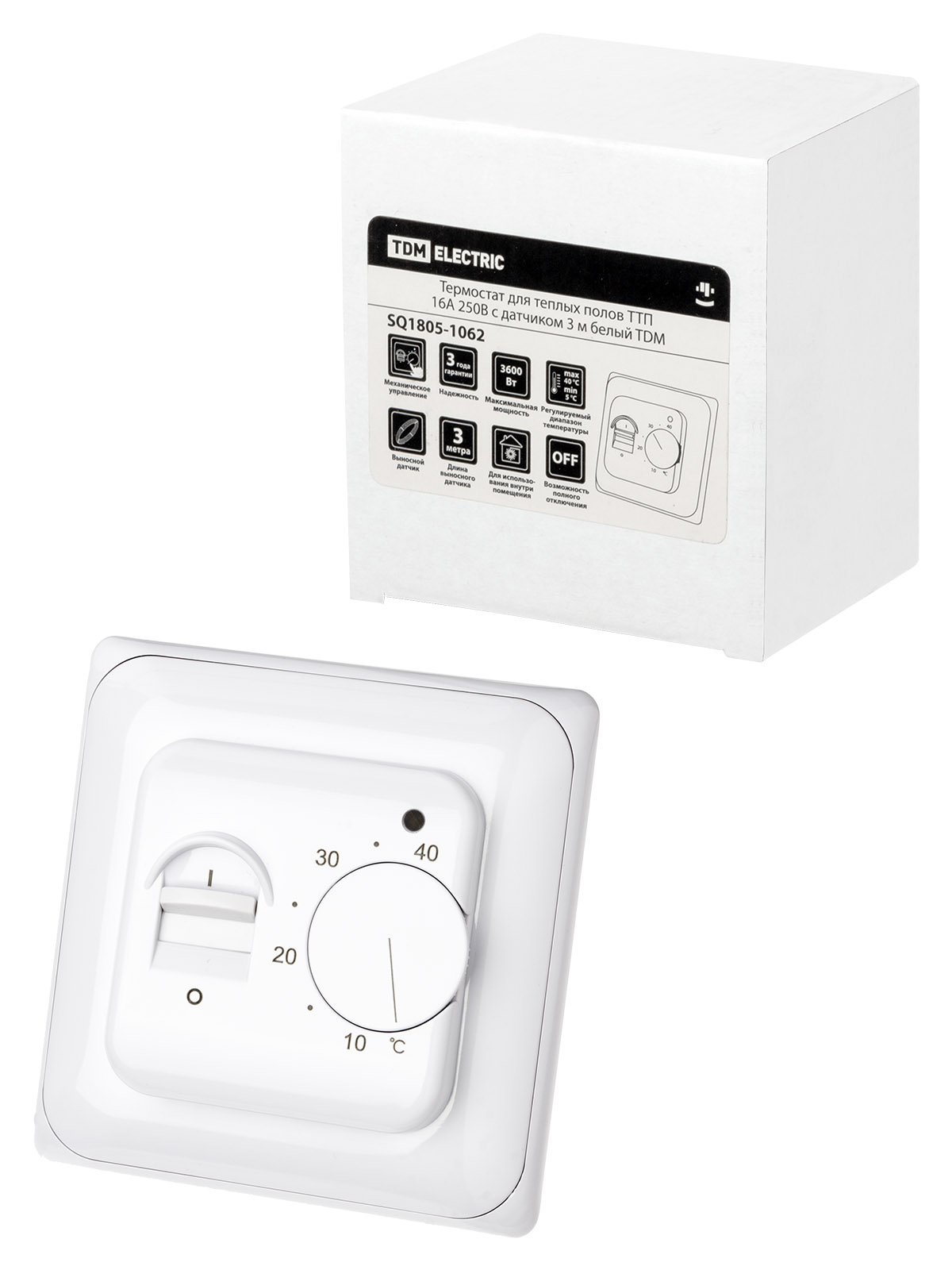 Терморегулятор мех. ТТП 16А 250в с датчиком 3м белый TDM
