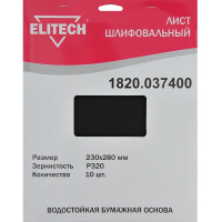 Лист шлифовальн. Elitech 230х280 мм Р 320 — купить в интернет-магазине в Таганроге | Цена, отзывы, фото
