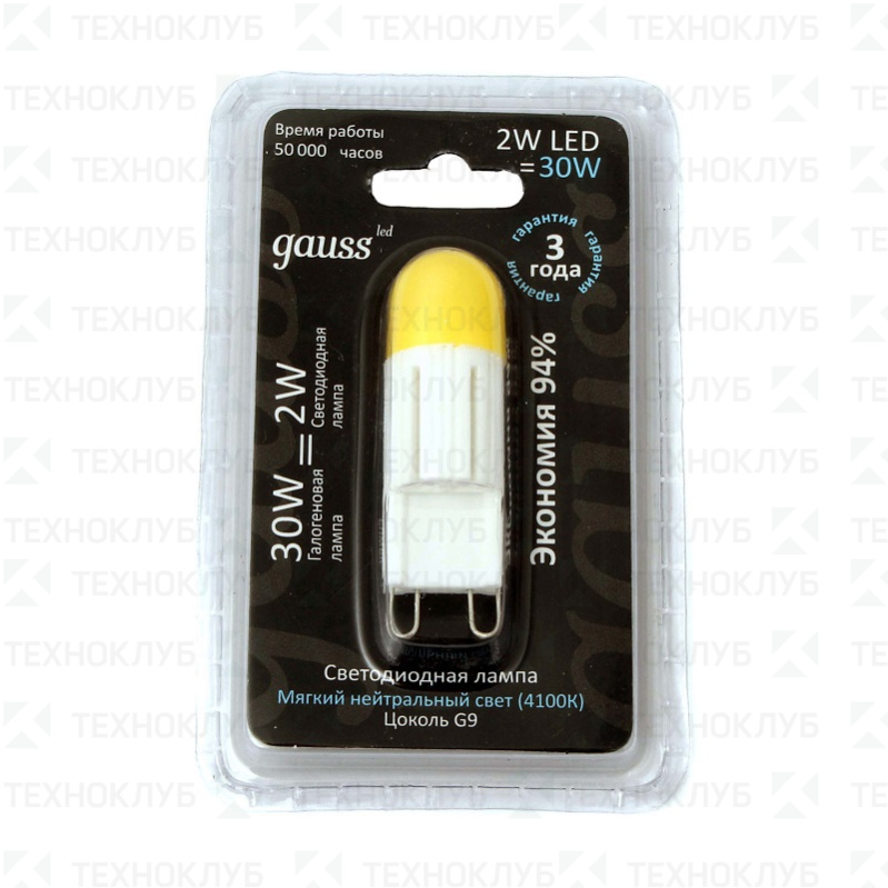 Лампа светодиод. G9 220V 2W Gauss 4100K